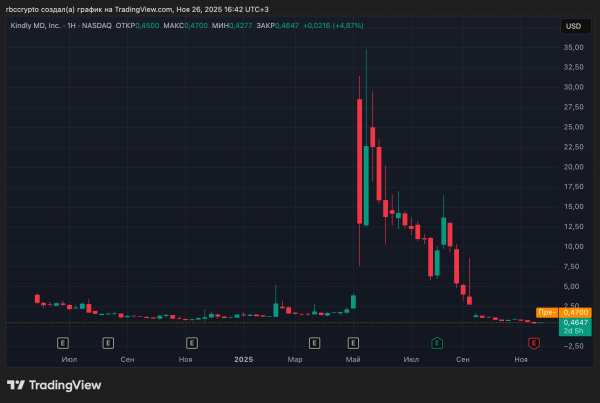 График цены акций компании с крипторезервом Nakamoto (KindlyMD). Источник: TradingView