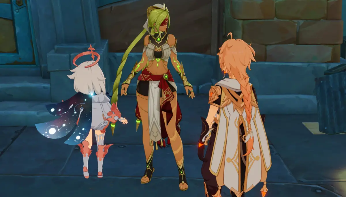 Вновь поболтайте с барышней. Путешественник и Паймон решат ее отпустить. Не исключено, что в будущем мы еще не раз повстречаем эту красивую смуглянку. Итак, теперь у вас должны быть все три жетона в кармане. Пора отправляться за наградой.
