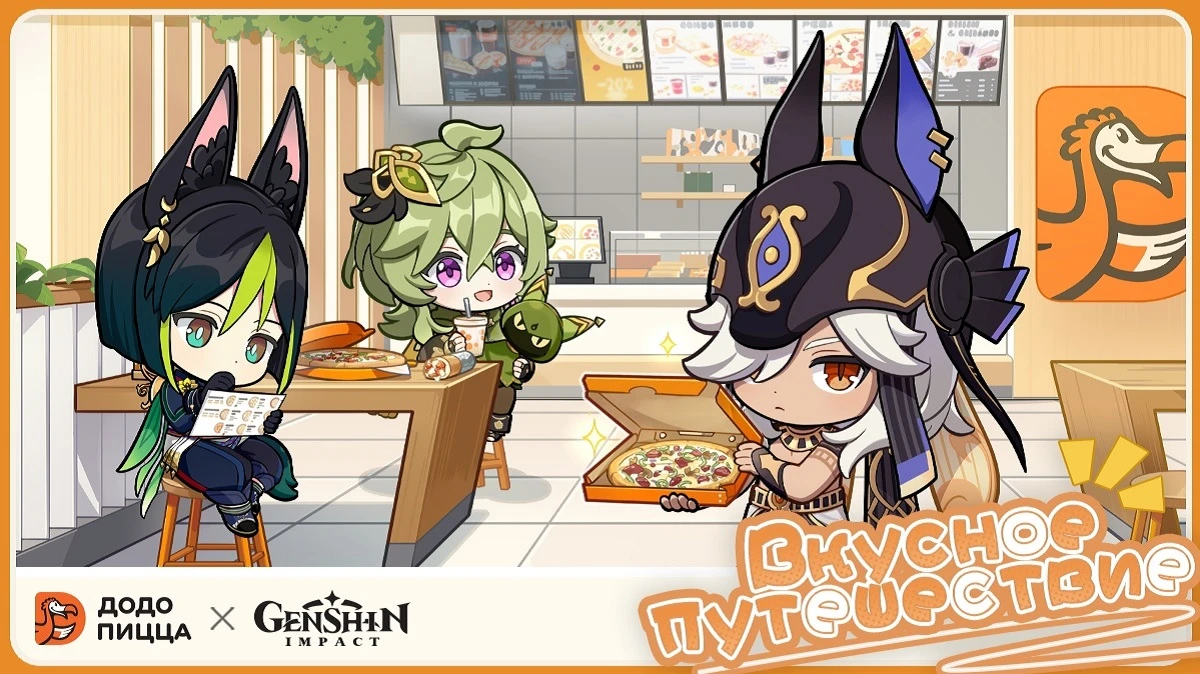 Genshin Impact и Додо Пицца проводят масштабную коллаборацию «Вкусное путешествие», в рамках которой игроки, купившие особую продукцию пиццерии, получат официальный мерч и внутриигровые подарки. В этой статье мы разберем подробности акции и расскажем, какие именно награды смогут получить Путешественники.