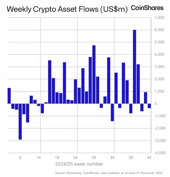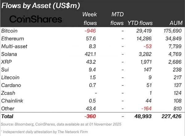 С 27 по 31 октября отток средств из инвестпродуктов на основе криптовалют составил $360 млн. Об этом говорится в отчете CoinShares.