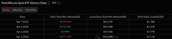 Восстановление в понедельник, 6 апреля, было недолгим. К закрытию торгов во вторник, 7 апреля, динамика исчезла почти так же быстро, как и появилась, уступив место широкой волне продаж по всем криптовалютным ETF.
