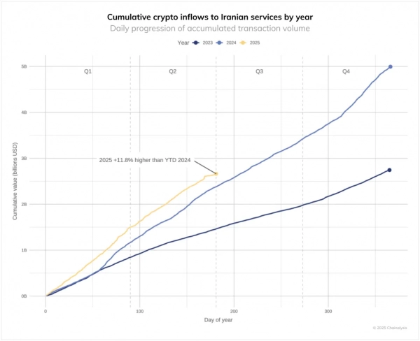 Несмотря на регуляторные и инфраструктурные сложности, объем криптотранзакций в Иране продолжает расти. По прогнозам, оборот превзойдет показатели 2023-2024 годов.
