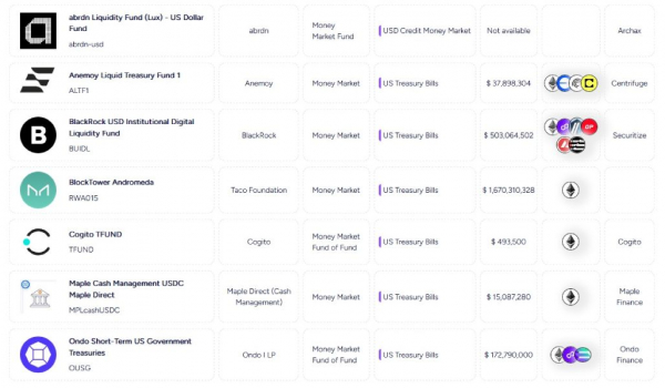 Судя по данным платформы Readi, в децентрализованных сетях представлено 11 токенизированных денежных фондов. Ведущие позиции по рыночной капитализации занимают: