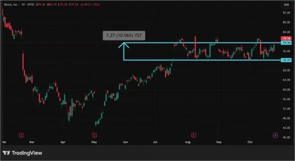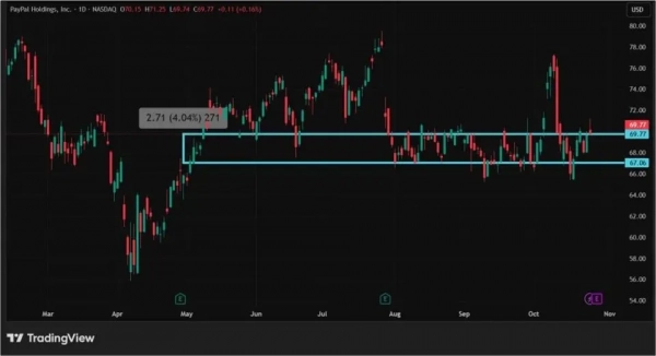 Платежный сервис PayPal, предоставляющий услуги в криптовалюте, а также имеющий свой собственный стейблкоин — PYUSD, расположился на четвертом месте с рыночной капитализацией $66,65 млрд. В октябре 2025 года акции компании выросли на 4,04%. При этом, к 9 октября ценные бумаги PayPal торговались еще на 7,5% выше: инвесторы позитивно отреагировали на создание платежным сервисом новой службы PayPal Ads Manager, которая будет фокусироваться на работе с малым бизнесом по созданию рекламы. А вот дальше в настроения инвесторов вмешались заявления Трампа. Сначала его угрозы по поводу введения пошлин в 100% на китайский импорт вызвали панику, а потом назначение встречи с Си Цзиньпинем в Южной Корее 30 октября снова привели к волне оптимизма.