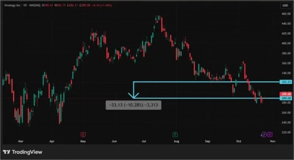 Тройку крупнейших компаний по капитализации открывает Strategy , обладающая самым большим резервом биткоина из публичных организаций, с $82,99 млрд. В октябре ее акции продолжили свое падение, снизившись на 10,28%. Стоимость ценных бумаг MSTR очень сильно реагирует на движения биткоина. Учитывая тот факт, что BTC во второй половине октября корректировался, падение акций Strategy было вполне предсказуемым.