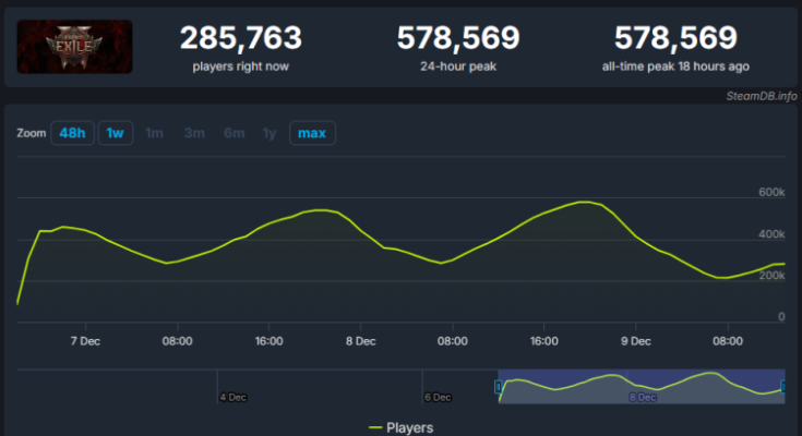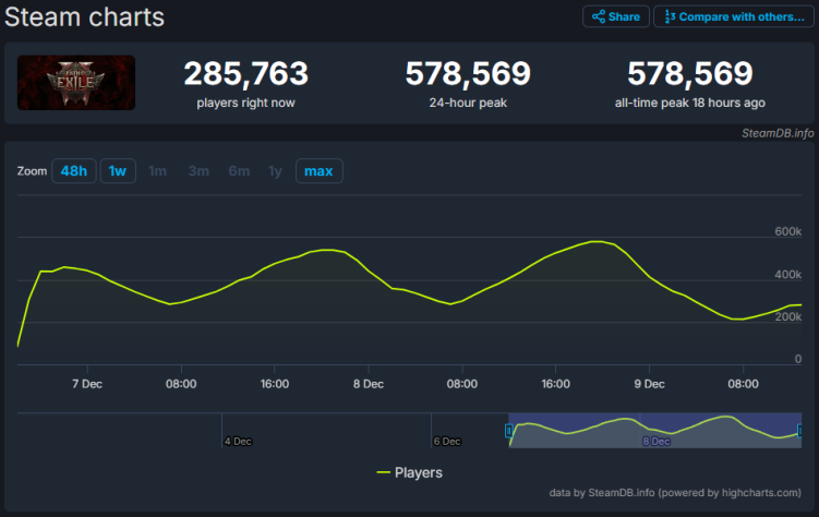 Более того, согласно данным со SteamDB, сиквел PoE попал на 15 строчку в списке самых популярных игр по пиковому онлайну за всю историю цифрового магазина Valve, обойдя  Valheim, серию Call of Duty,  Marvel Rivals и сотни других проектов.
