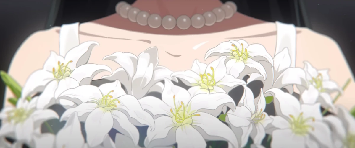 На сцене Астра исполняет ту же песню, что когда-то пела, будучи ребенком. Музыка пропитана болью, благодарностью и памятью о тех, кто ценой своей жизни спас ее. В финале Астра извиняется, и мы видим, как ее слезы падают на букет белых лилий – символ скорби и памяти.
