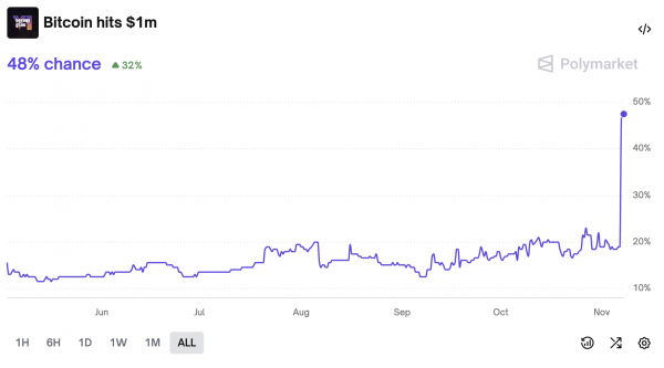 Прогнозы, в которых первая криптовалюта достигает $1 млн, нередки. Одним из последних о такой цели заявил основатель Strategy Майкл Сэйлор. 4 ноября он сказал, что актив «уверенно движется» к заветной отметке.