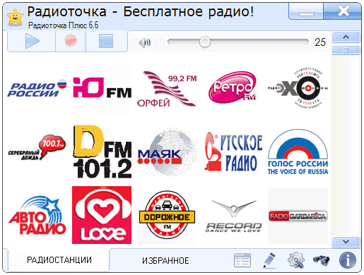 Программа Радиоточка бесплатная, многих порадует тот факт, что программа лишена рекламы. Программа имеет минималистический интерфейс, который не перегружен ничем лишним.