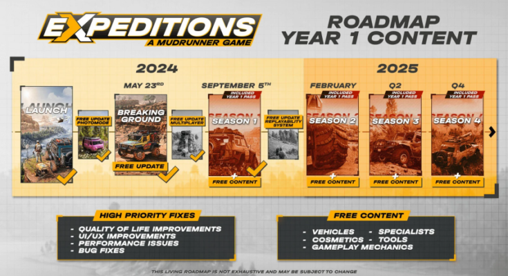 Разработчики из Saber Interactive подлились планом контентной поддержки Expeditions: A MudRunner Game на ближайший год.