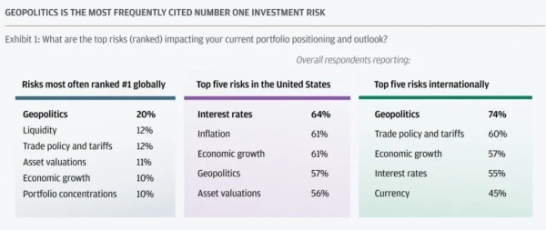 Главным риском для портфелей респонденты назвали геополитику (20%). На втором месте оказались проблемы с ликвидностью и торговая политика (по 12%).