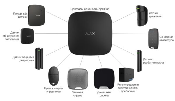 AJAX охранная система состоит из различных компонентов, которые можно настраивать в зависимости от ваших потребностей: