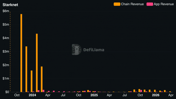 Структурные изменения проходят на фоне резкого снижения финансовых показателей проекта. Если в конце 2023 года доход сети Starknet достигал $6 млн в месяц, то за первую половину 2026 года общая сумма составила всего около $48 000.