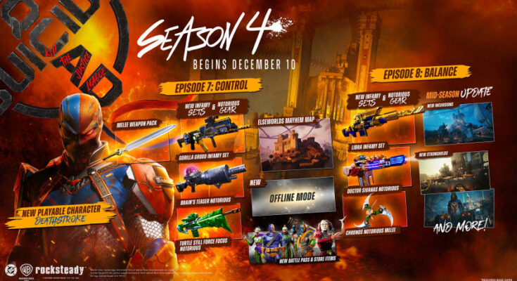 Четвёртый сезон содержит в себе седьмой и восьмой эпизоды, последний из которых стартует в январе 2025-го, — он станет заключительным контентным обновлением для «Отряда самоубийц».