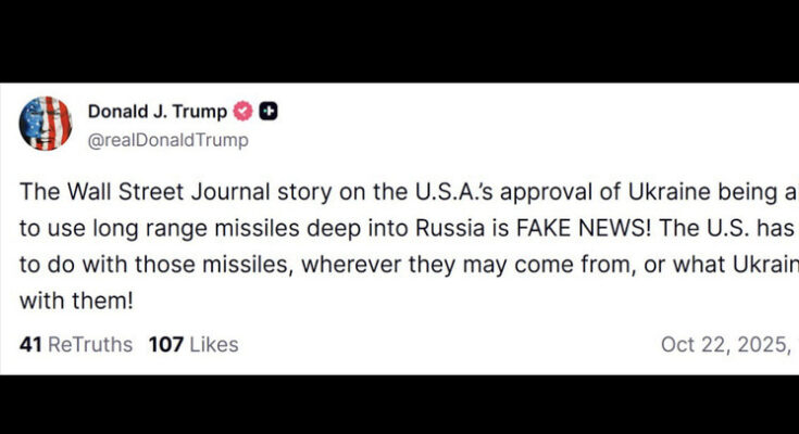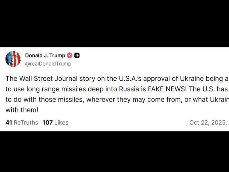 «Статья в Wall Street Journal о том, что США одобрили Украине использование ракет большой дальности на территории вглубь России, — ФЕЙК НЬЮС! США не имеют никакого отношения к этим ракетам, откуда бы они ни были, и что бы Украина с ними ни делала!», – написал американский лидер в своей соцсети.