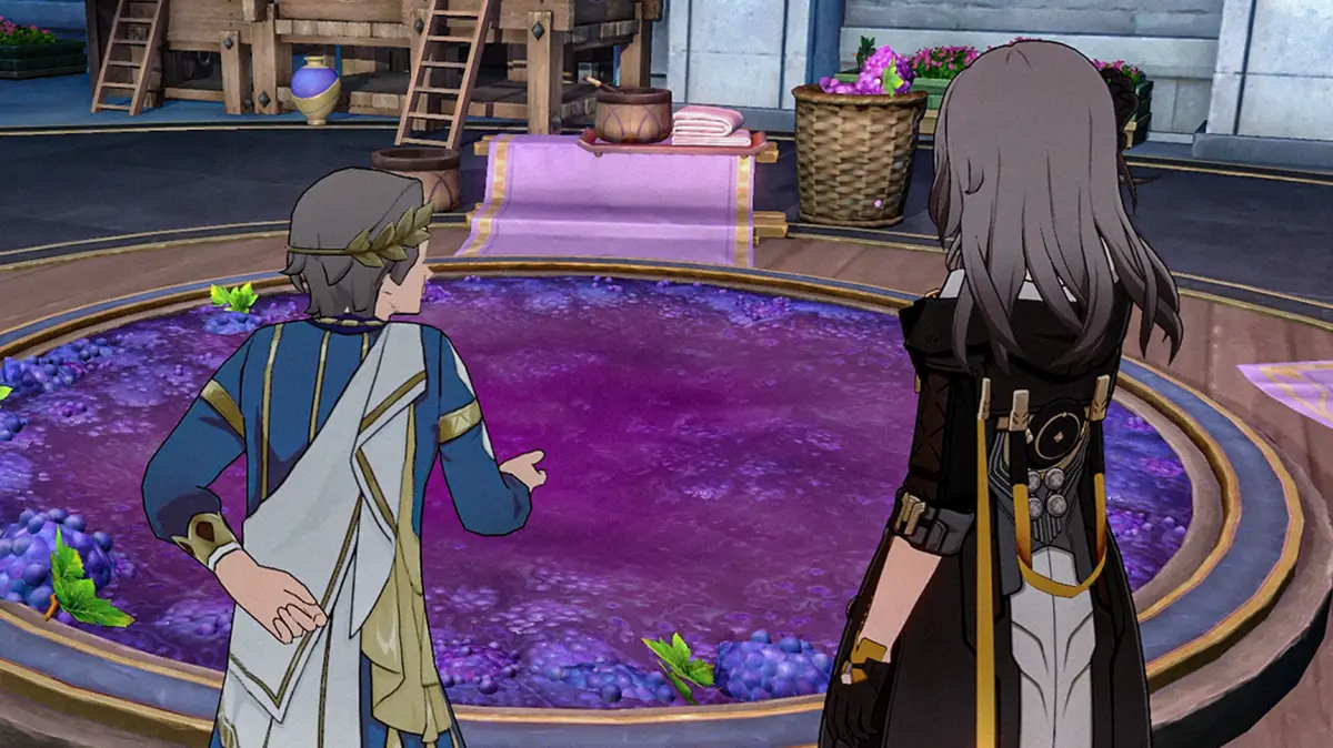 Возможность запустить этот сайд-квест появится при окончании всей сюжетки «Пока живы герои» — завершите ее, а затем отправляйтесь в Павильон родниковых песен на востоке карты и пройдите в винодельню. Потопчитесь немного по круглой площадке с виноградом, чтобы приступить к прохождение миссии.